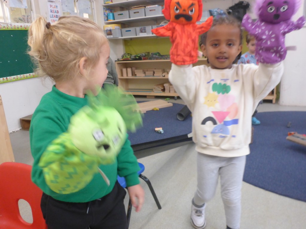 Inside the classroom, feelings hand puppets have been a popular resource. Children are learning to identify different emotions and copy facial expressions, supporting their personal, social and emotional development.