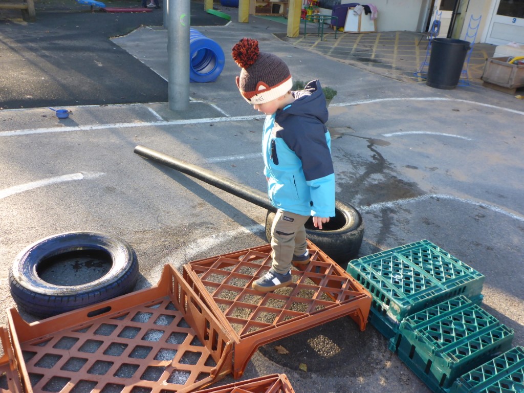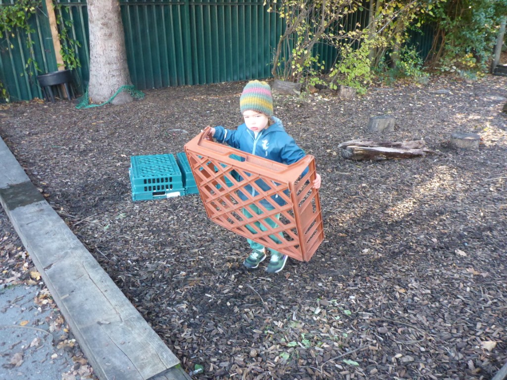Outdoor play has also been a focus. Children have been using crates creatively, turning them into campfires and beds, and building structures to walk and balance on. These activities promote physical development, problem-solving and imaginative play.