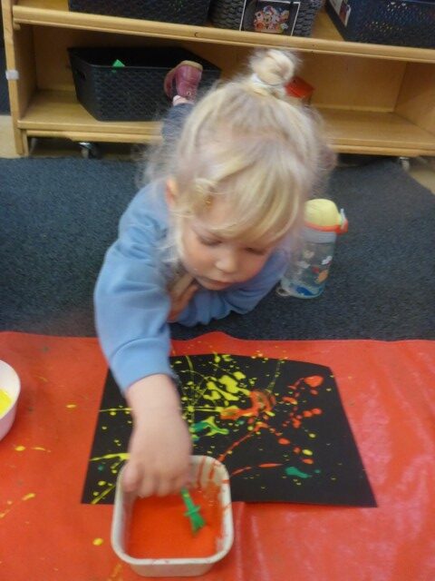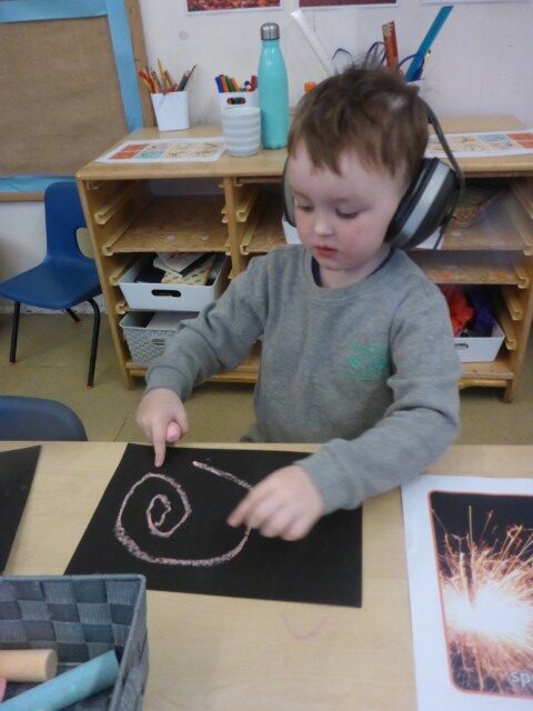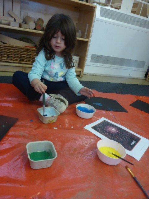 Fir Class has been having a wonderful time exploring colour and light, with fireworks as their inspiration. Children have been experimenting with bold, bright painting on a large scale, discovering how vivid colours really pop against black paper — just like fireworks lighting up a night sky.