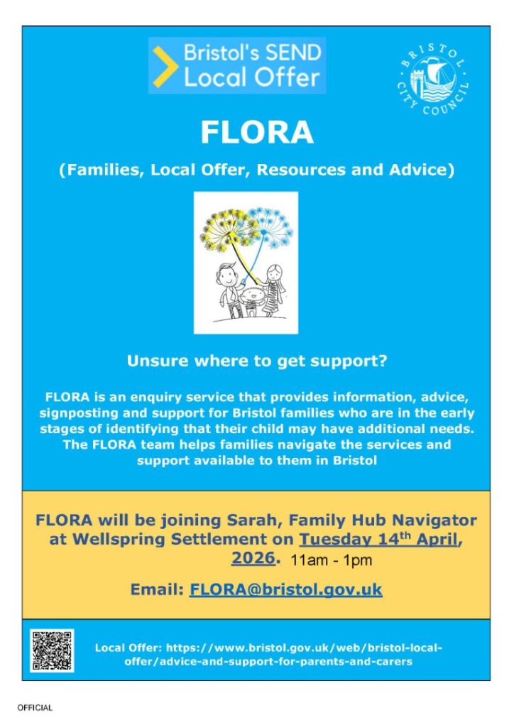 To contact FLORA directly, email FLORA@bristol.gov.uk. For more information about Bristol’s SEND Local Offer and support for parents and carers, visit https://www.bristol.gov.uk/web/bristol-local-offer/advice-and-support-for-parents-and-carers